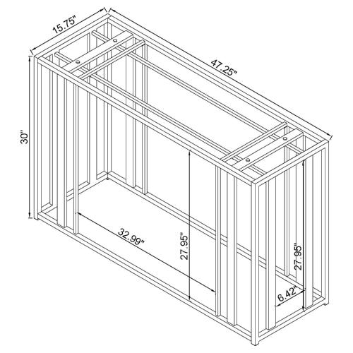 This modern rectangular console table features a clear tempered glass top paired with a geometric base crafted from heavy-gauge metal with a sleek electroplated finish. The open design creates a contemporary aesthetic, offering both elegance and durability. Ideal for placement in entryways, hallways, or behind sofas, this console table provides a spacious surface for displaying decor or organizing essentials. Its scratch-resistant materials ensure long-lasting quality with easy maintenance.
