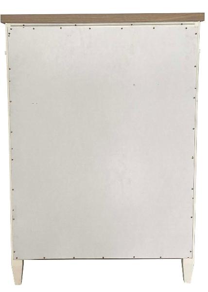 This six-drawer chest is expertly crafted from poplar solids and birch veneers with an oak veneer top and boasts a fresh, hand-painted cotton finish with a contrasting weathered natural top that exudes timeless charm. Solid-metal custom hardware in an authentic burnished bronze finish adds a touch of elegance to this piece. The tapered legs create an eye-catching silhouette, making this chest an elegant and functional addition to any bedroom.