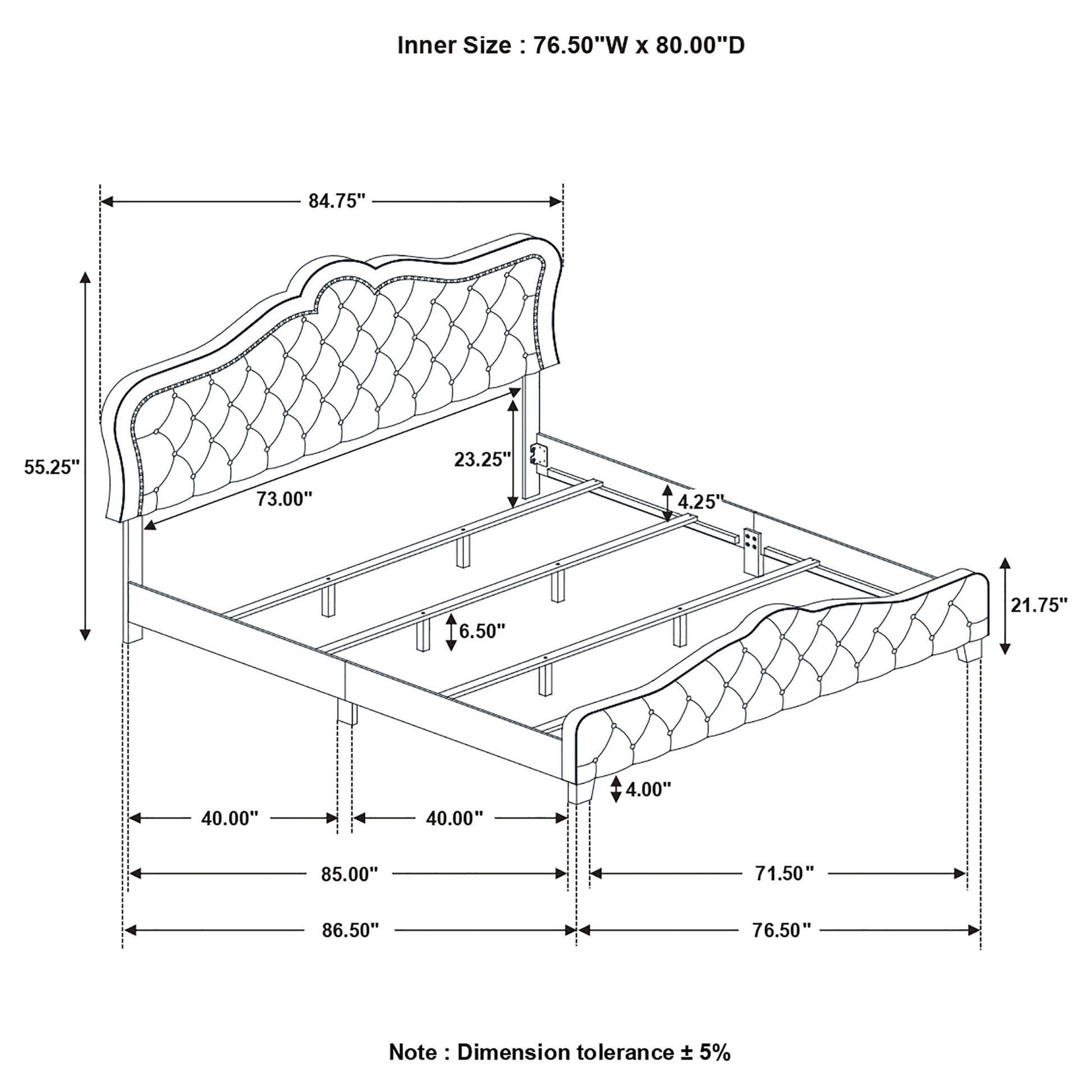 Enhanced with self-welt trim, this bell style headboard adds an ornate and traditional touch to your sleeping space. Button tufting adorns this piece with classic button accents. Intricately applied nailhead trim further enhances the style of this headboard. Upholstered in luxurious grey felt, this is a comfortable and stylish addition to your space. Complete the look of your bedroom with a traditional headboard with modern elements.
