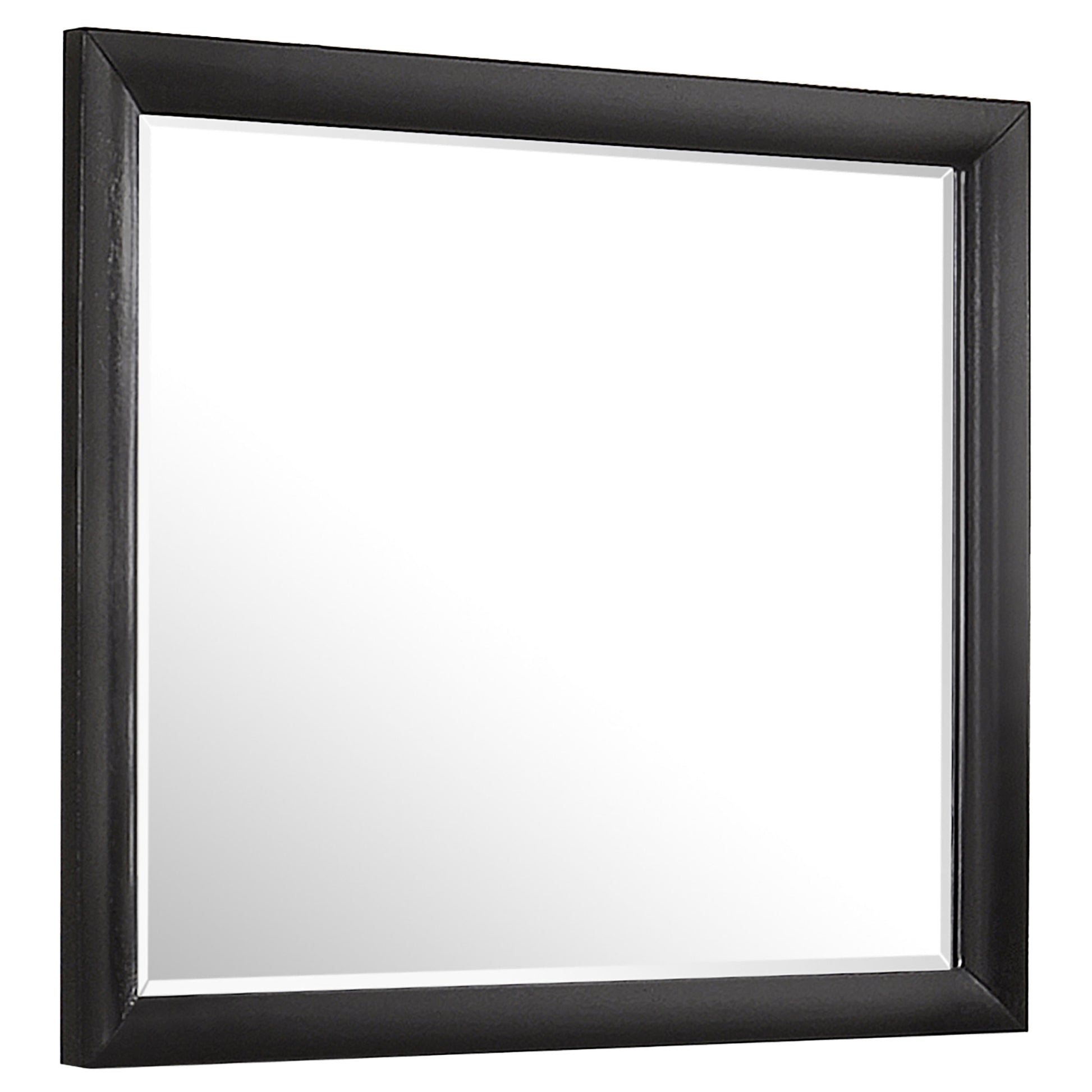 The Briana collection features this 4-piece bedroom set with transitional styling for a primary suite. The storage bed offers function and fashion with drawers in the footboard as well as storage compartments behind drop down doors in the headboard and right side. The drawers of the nightstand and dresser offer plenty of storage space with chambered edge drawer fronts and brushed chrome knobs. The rectangular mirror has straight lines and fits easily upon the dresser to round out the set. The versatile set is finished in black for an enduring appeal.