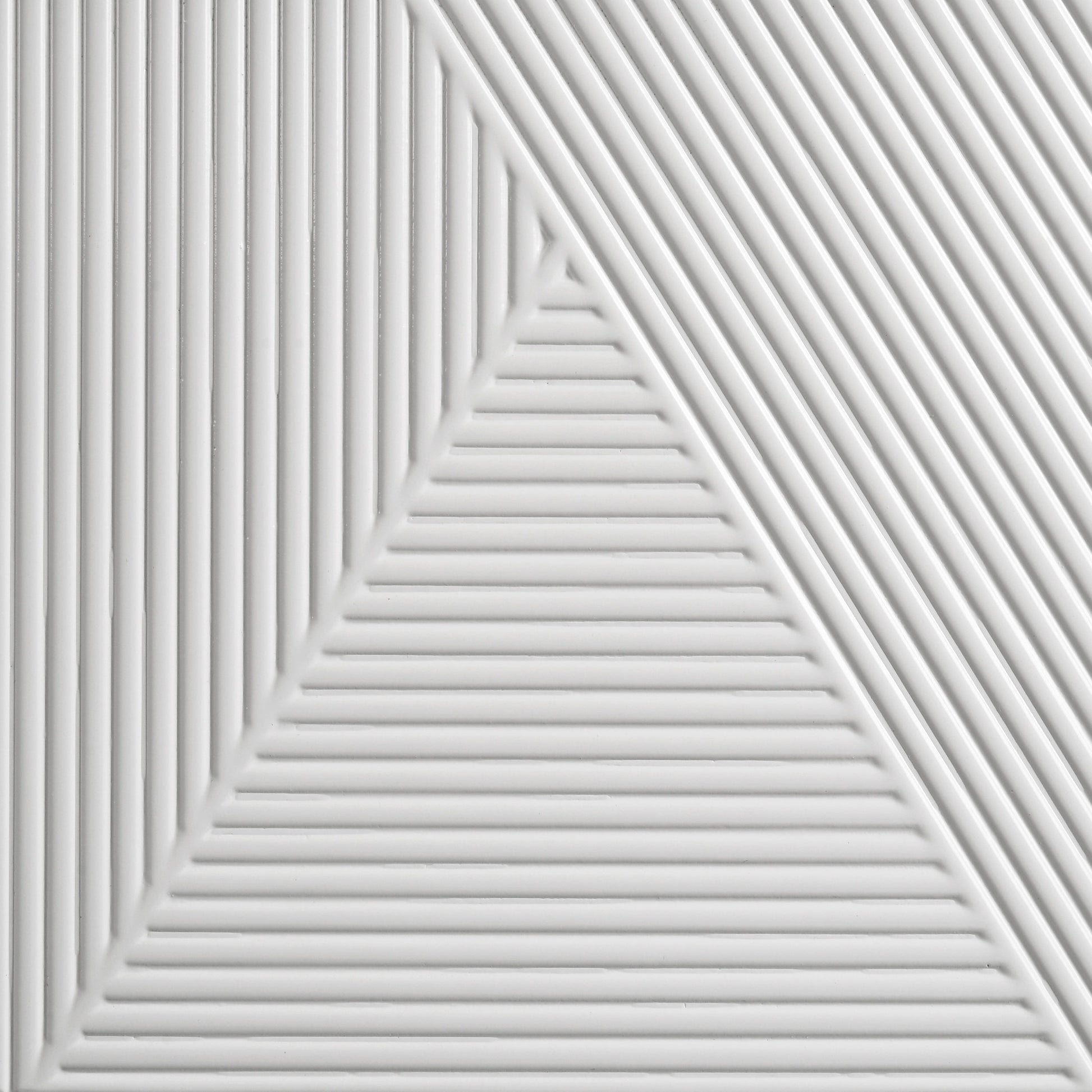 Crisp white high gloss and sculptural textures define this modern bedroom set, blending sleek surfaces with dimensional details. Geometric drawer fronts feature ribbed V-patterns and polished chrome pulls, while all drawers glide smoothly on 45mm ball bearing hardware. The headboard stands out with chevron-tufted white faux leather framed by soft white LED trim. Completing the ensemble, a coordinating LED dresser mirror adds ambient glow and polished symmetry to the space. Elevated on chrome legs, this set is a showcase of contemporary form and function.