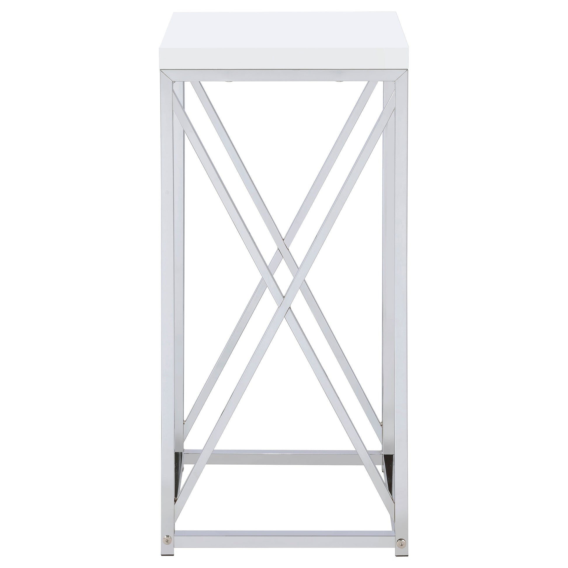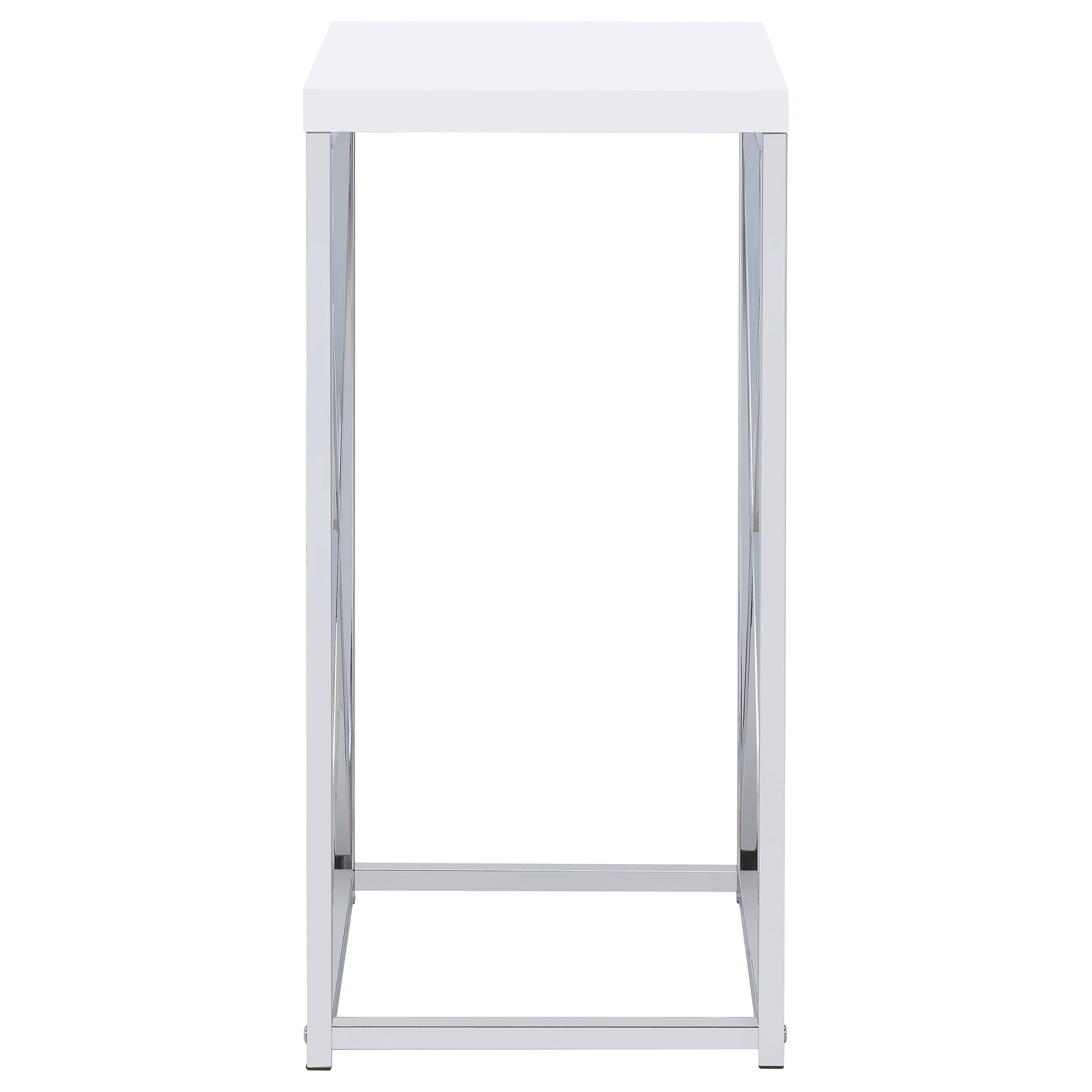Edmund Square Accent Side Table White High Gloss and Chrome