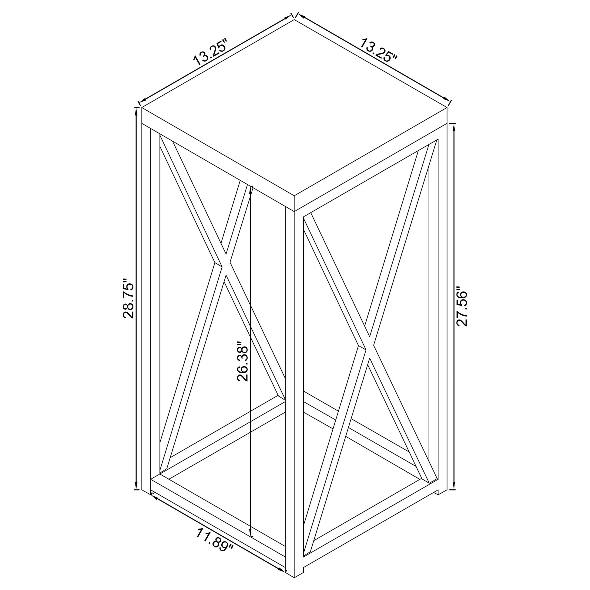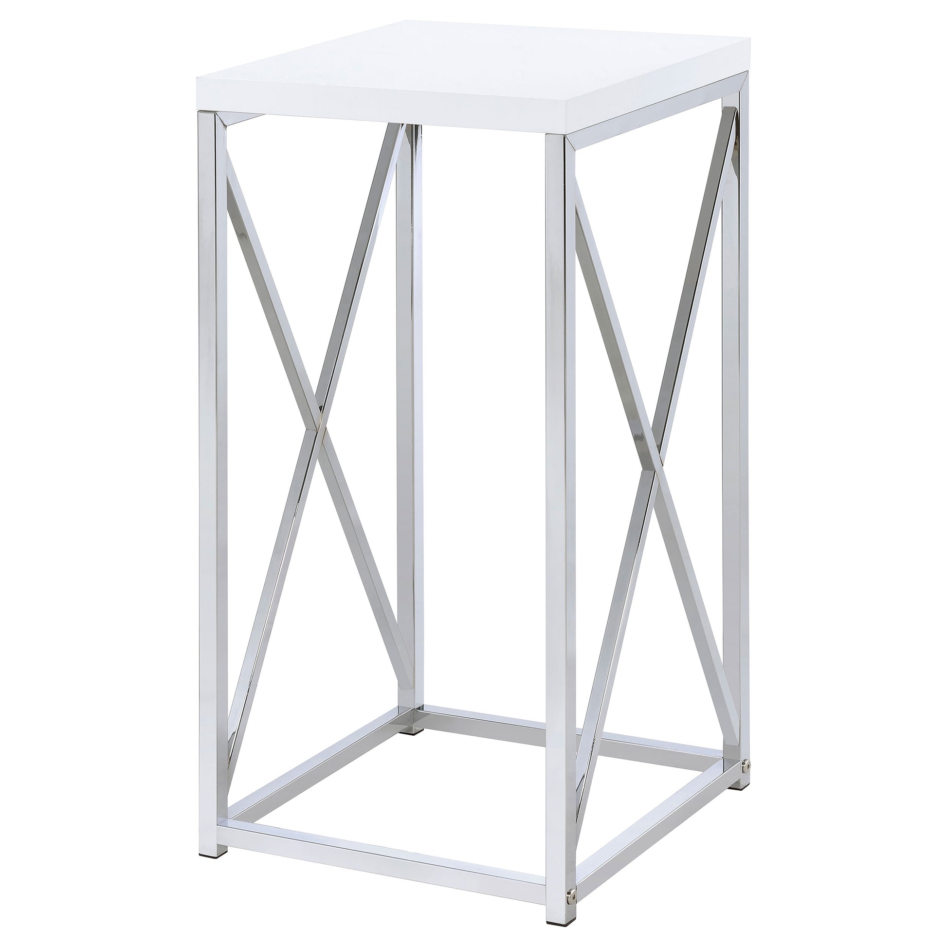 This the modern accent table oozes luxury and offers a sophisticated update to a simple silhouette. Decorated with X-shape details, the base is constructed of sleek lines in a bright, metallic finish. Dress up any living or sitting area with the crisp and glossy white finish of the square top. Create an open feel with the airy legs and shiny hues, perfect for adding depth. Display your favorite vase in style over cross hatched details.