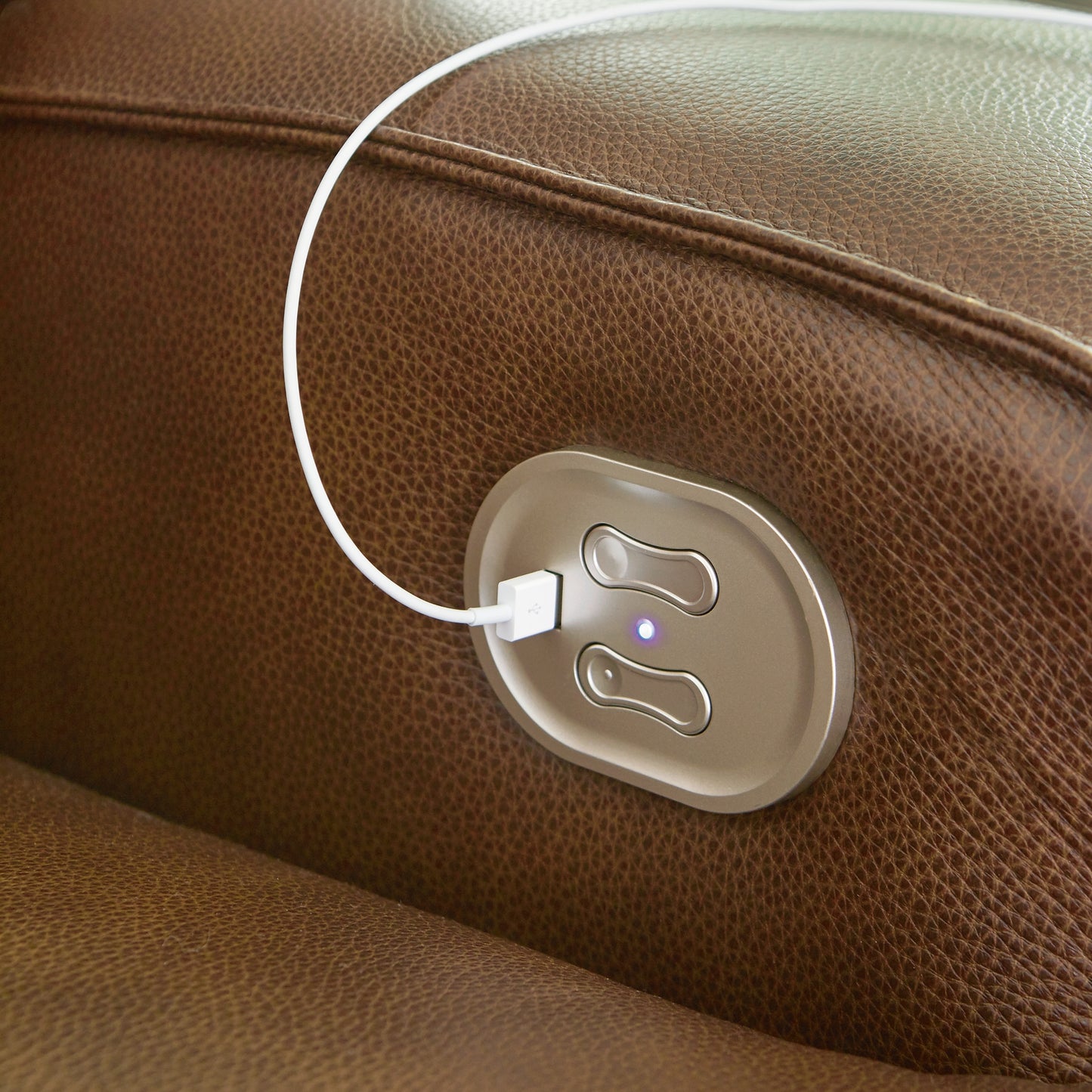 Details | One-touch power control with adjustable positions, Easy View™ adjustable headrest and zero-draw USB port, Zero-draw technology only consumes power when the USB receptacle is in use, Corner-blocked frame with metal reinforced seat, Attached cushions, High-quality foam cushions wrapped in poly fiber, 100% top grain leather covers inside areas such as the back, seat and arm cushions; skillfully matched faux leather covers the remaining areas, Due to its natural origin, real leather can show individual characteristics such as healed scars, growth marks, grain variation and shade variation, Natural variations make each hide unique and do not detract from the wearing qualities of leather, Power cord included; UL Listed | |