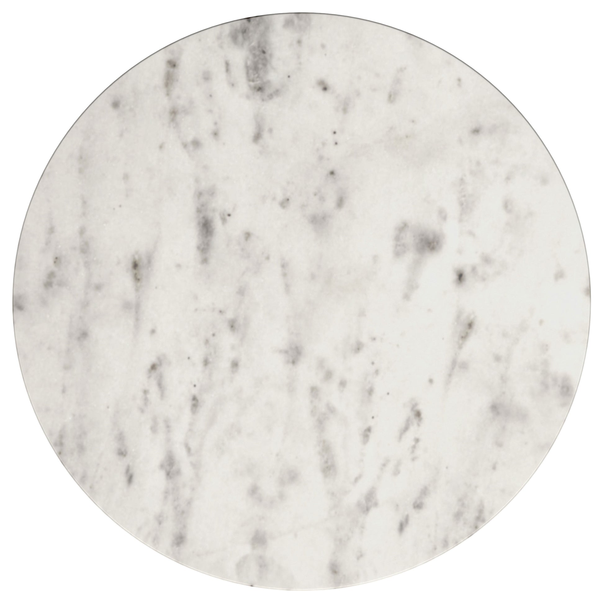 This end table combines contemporary style with premium materials, featuring a 20-inch diameter genuine marble top and a sturdy iron metal base. The open, vertical rod design creates an airy and modern look while providing reliable support. Its compact size makes it versatile as a side table, accent table, or bedside companion. The smooth marble surface adds sophistication, perfect for smaller spaces in living rooms or bedrooms.