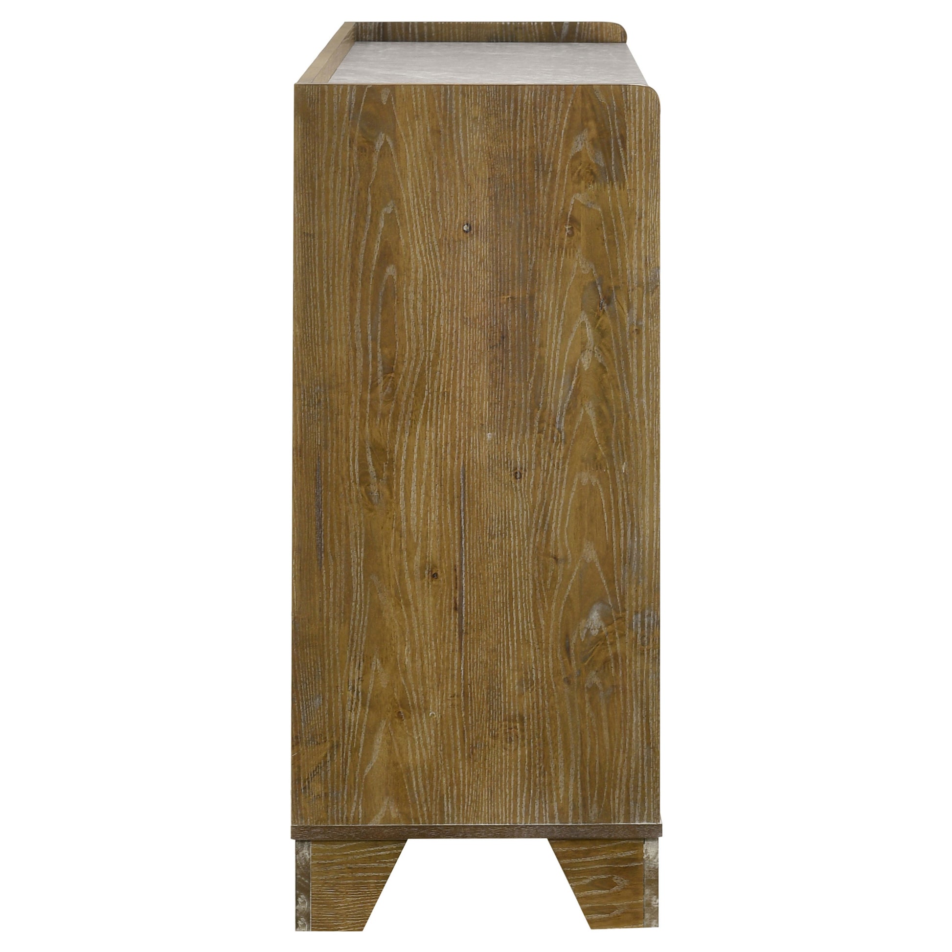 Blending natural warmth with clean-lined simplicity, this six-drawer dresser captures the best of rustic and contemporary design. Crafted from solid rubberwood and finished in a weathered medium oak, it features embossed wood grain surfaces that add character and depth. A faux marble melamine top introduces subtle contrast, while sculpted finger pulls and heavy-duty drawer glides offer seamless daily use.