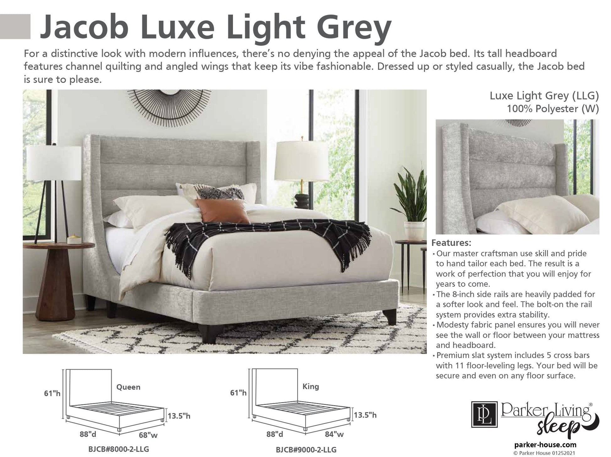 For a distinctive look with modern influences, there’s no denying the appeal of the Jacob bed. Its tall headboard features channel quilting and angled wings that keep its vibe fashionable. Dressed up or styled casually, the Jacob bed is sure to please.