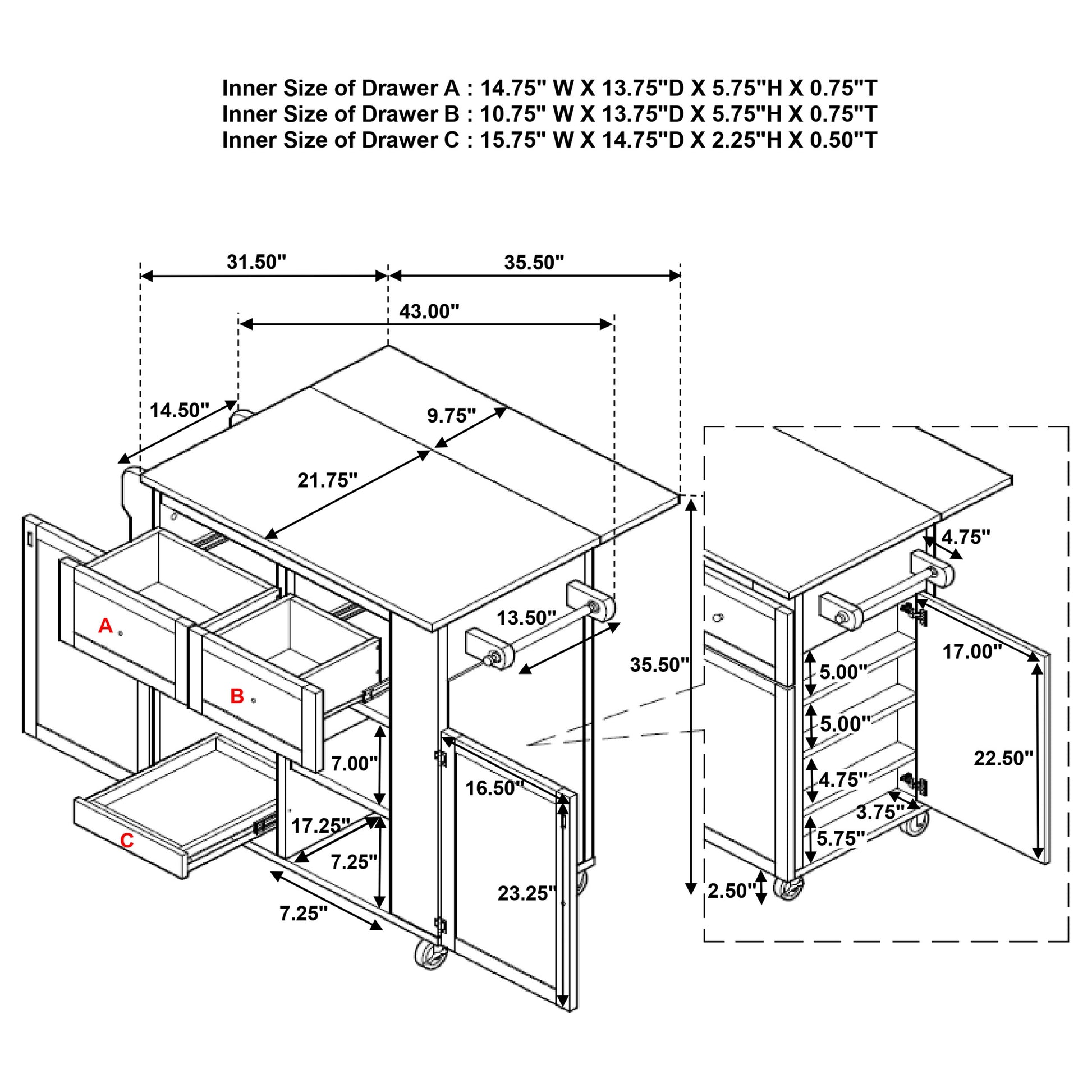 • Drawer Weight Limit: 20 Lbs