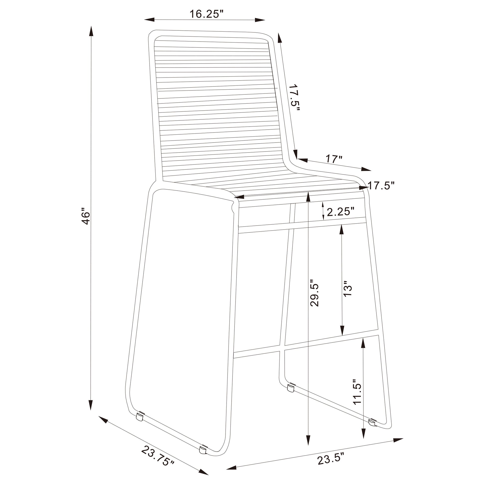 • Metal frame offers an open, airy feel with its slim seat and angled legs, plus extra support with a lower footrest