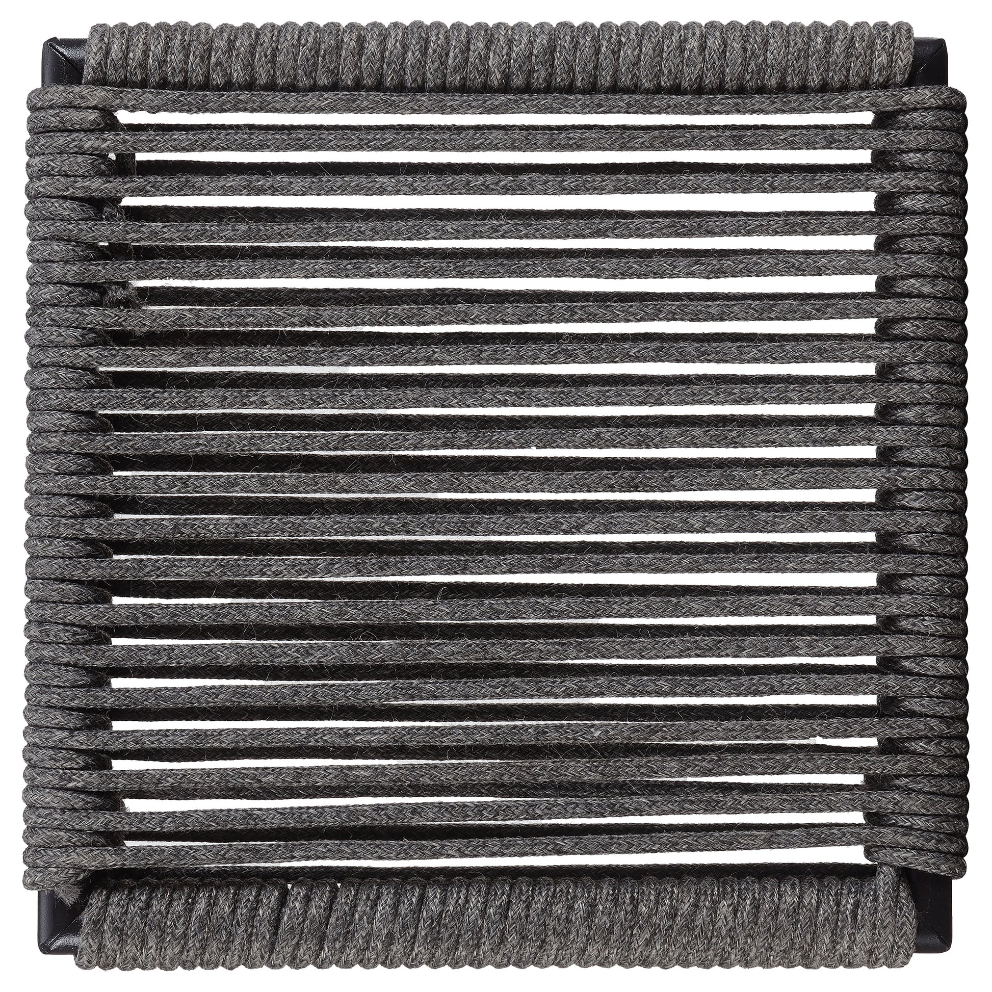• Create a restful spot with a tall and slender metal frame in a gunmetal finish, wrapped in charcoal tone rope around the backrest and seat