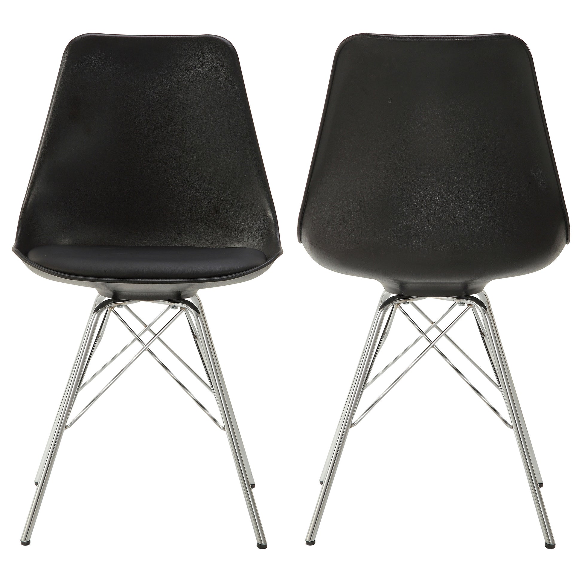 • Chrome electroplated metal Eiffel-style legs add modern angular design and stability