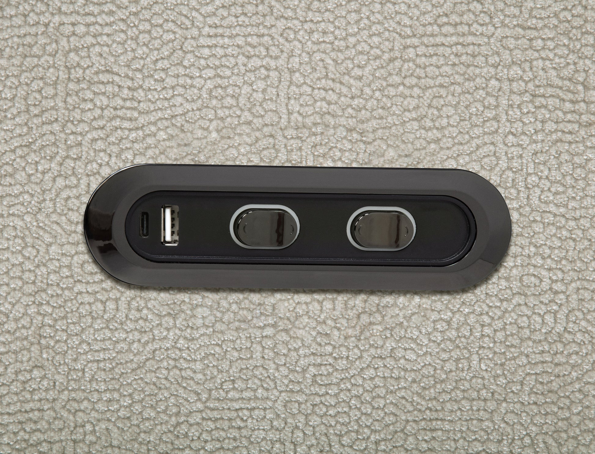 • Dual recliners operate via smooth push-button control with one-touch home reset