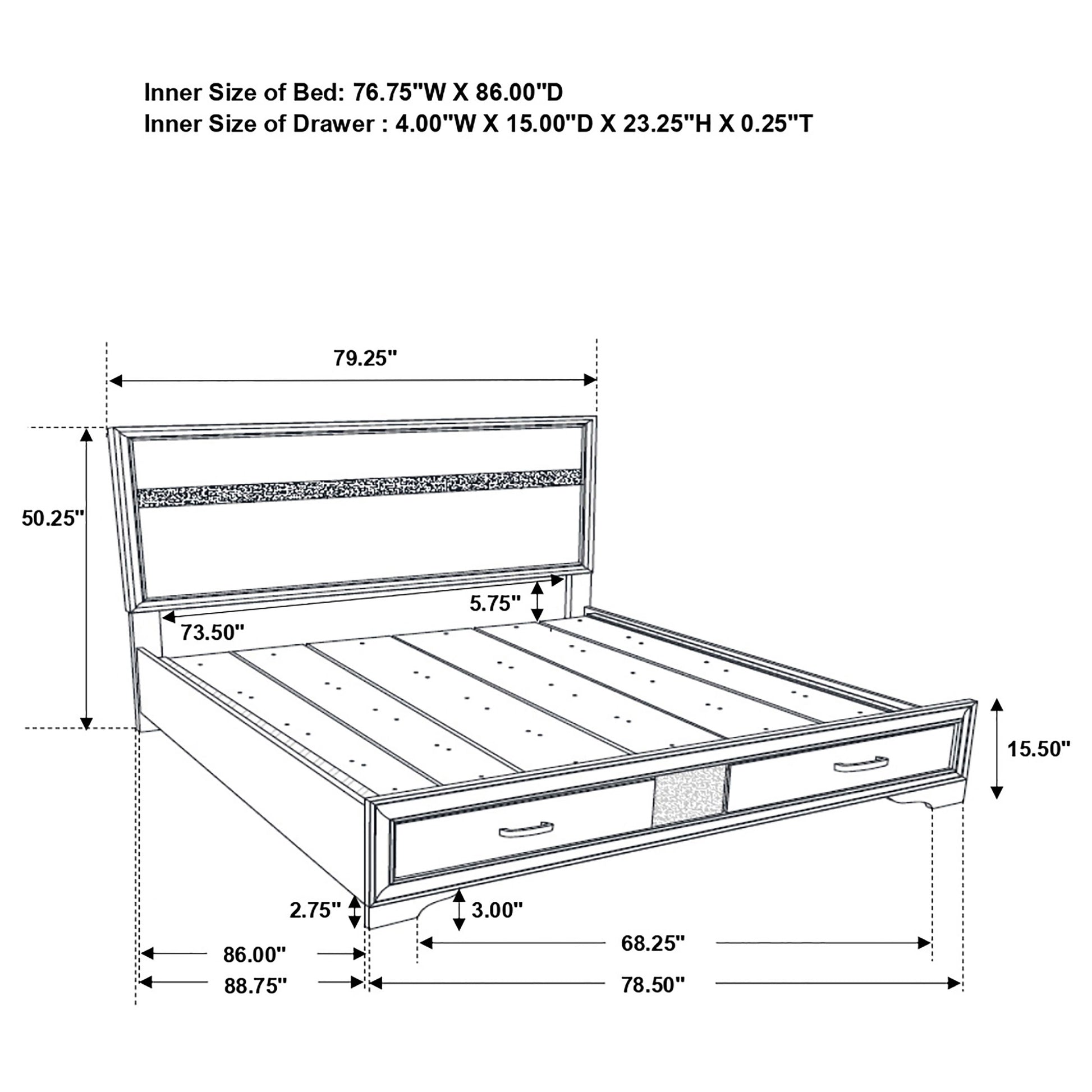 • Storage panel bed with integrated drawers in footboard design