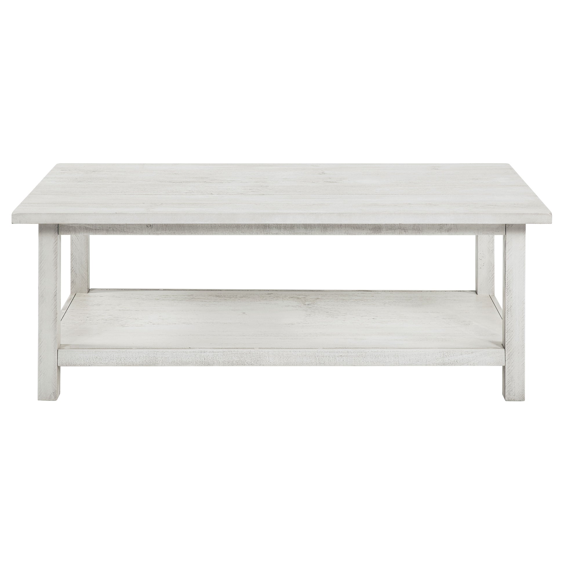 Bring timeless appeal and ample surface space to your living area with this rectangular coffee table. A pine wood and engineered wood construction, enhanced by pine veneer, ensures durability while exuding a warm rustic charm. Its open lower shelf keeps daily items within easy reach or provides space for decorative accents. Perfectly sized for gatherings or casual lounging, this cocktail table seamlessly complements modern farmhouse and relaxed interiors