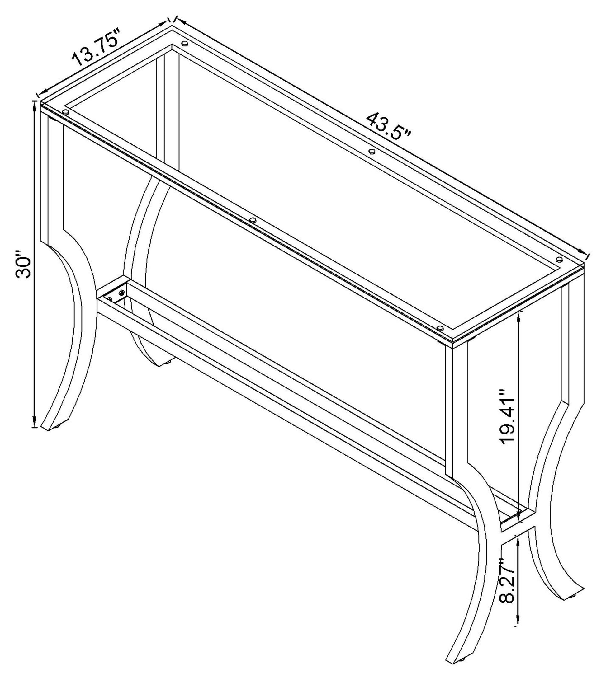 Add modern sophistication to your home with this sleek rectangular console table. Featuring a clear tempered glass top and a matching lower shelf, it offers ample space for storage or display. The elegant curved legs and open design enhance its airy, contemporary feel, while the electroplated polished chrome frame ensures durability and style. Perfect for hallways, entryways, or behind a sofa, this console table blends functionality with a striking modern aesthetic.